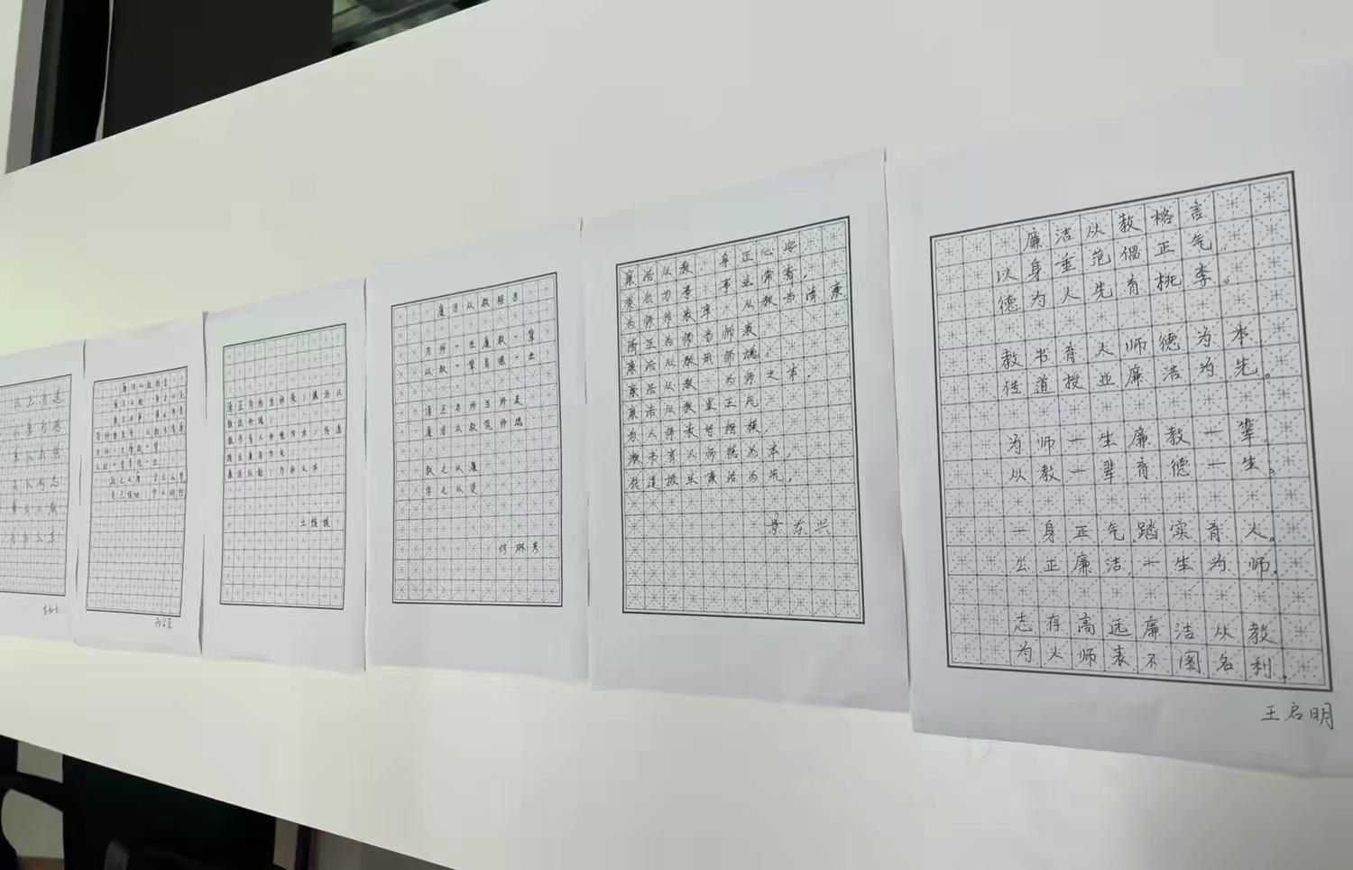 最后,景东兴同志通过领学违反师德师风的典型案例,强调全体党员教师要深刻体会和吸取典型反面案例的教训,树立“廉洁从教,以德育人”的坚定信念。此外,支部党员还进行了廉洁从教格言书写活动。全体党员书写、临摹有关廉洁从教的诗词、警句及名人名言,进一步强化党员教师的廉洁意识,坚定廉洁从教的决心。