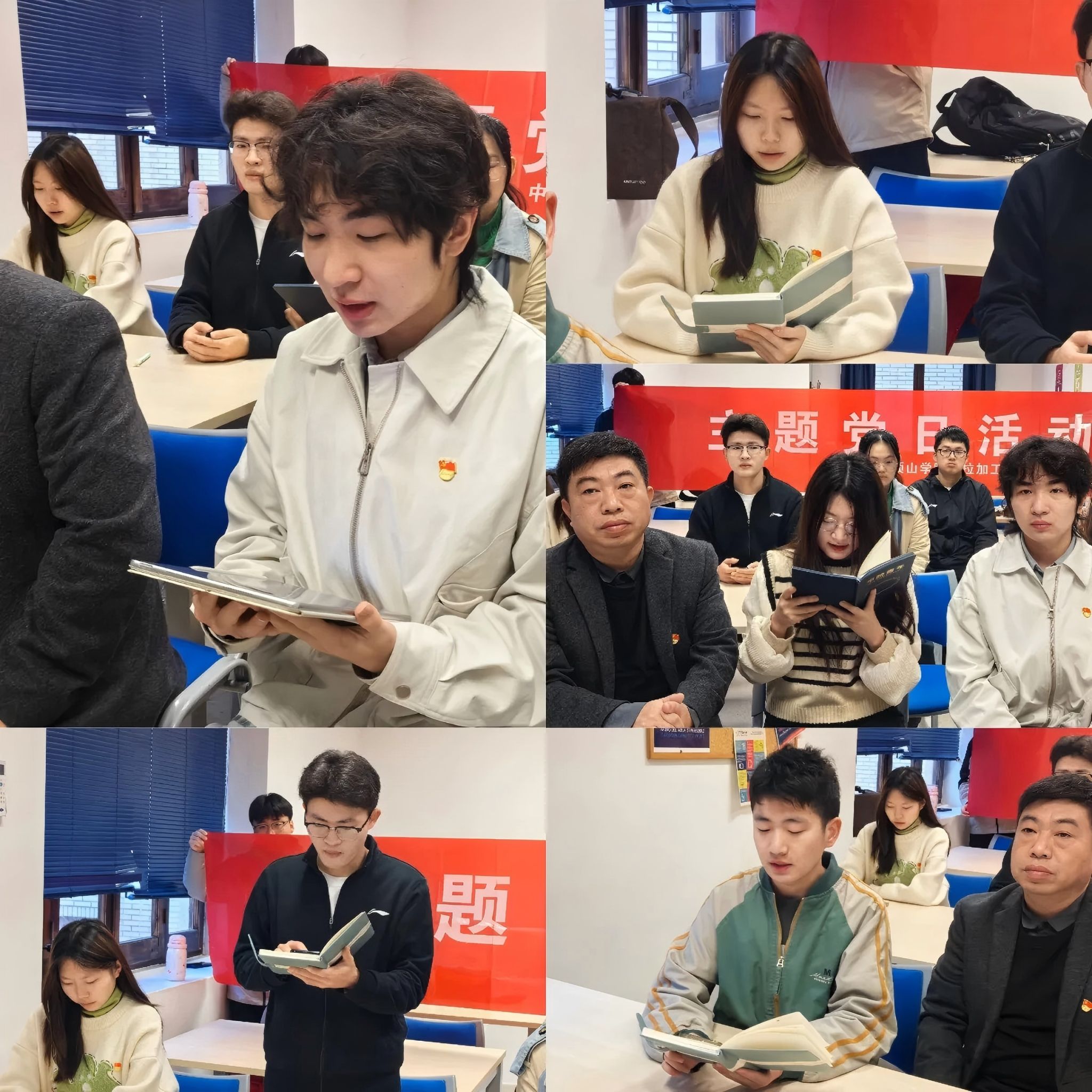 紧接着,研学团中共预备党员代表依次发言,结合自身研学经历畅谈体会。张锡泰同志以马拉加古罗马剧场遗址考察为例,分享了对文化遗产保护与传承的思考,提出要以党员标准严格要求自己,坚定文化自信,为文明互鉴贡献力量;刘雅琳同志从阿尔卡萨巴城堡的历史底蕴讲起,感悟不同国度对进步与正义的共同追求,并表示作为中国青年,今后更要在专业实践中扛起青年党员责任;蔡若涵同志结合在马拉加的研学课程与城市见闻,讲述了传统与科技交融场景为专业学习带来的新启发;张伟壮同志从铭记历史、践行使命、面向未来三个维度,回顾革命先辈海外探索历程,并呼吁在国际交流中讲好中国故事;游文政同志立足电子信息专业,表达了将红色精神转化为攻克技术难题、服务国家发展的坚定决心。