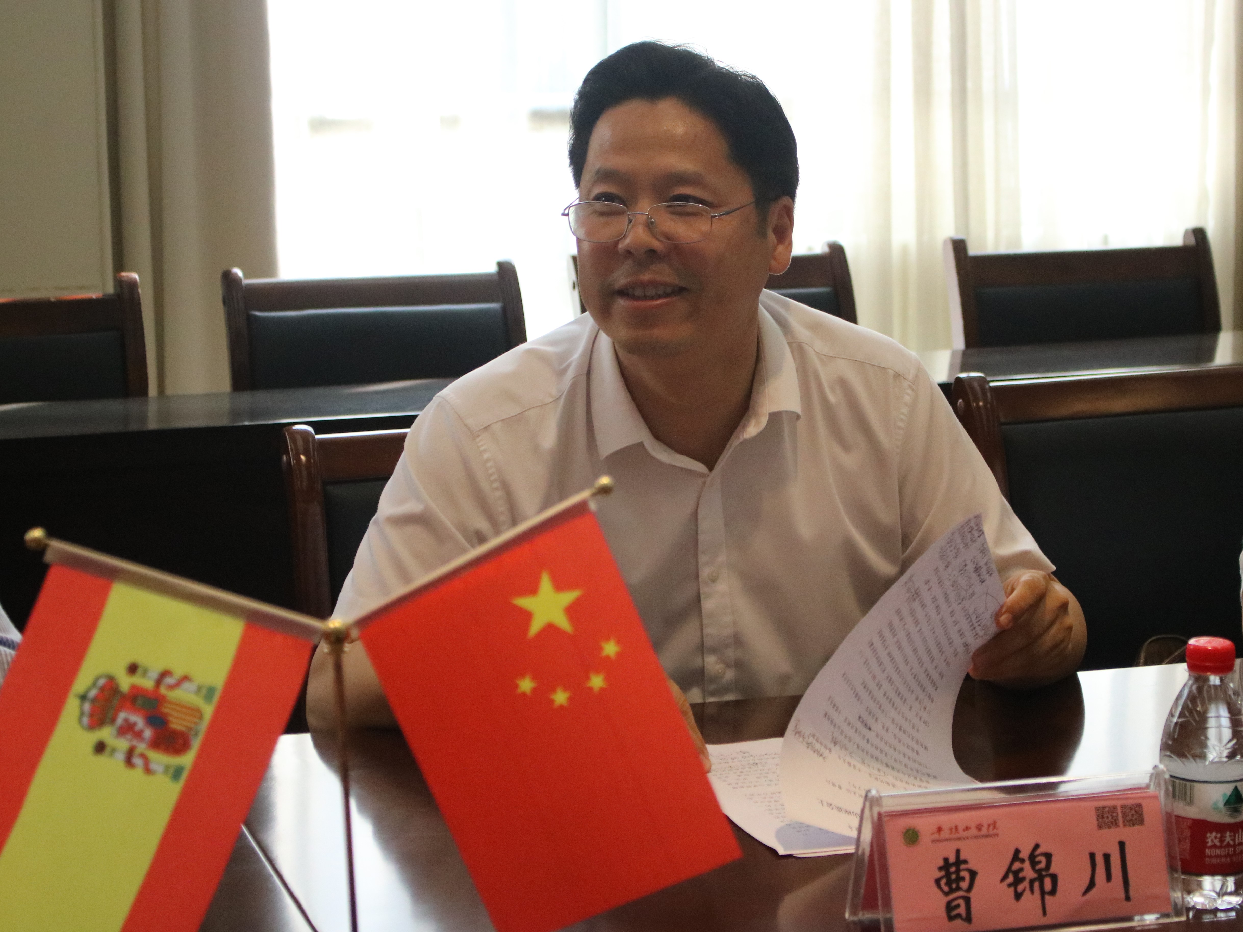 平顶山市政府外事办公室副主任曹锦川发表讲话。他就平顶山市当前高等教育情况发展现状向马拉加大学代表团进行介绍,表示平顶山市政府将继续深化校地融合发展,充分发挥中外合作办学优势,大力提升办学水平,全力营造良好的办学外部环境。