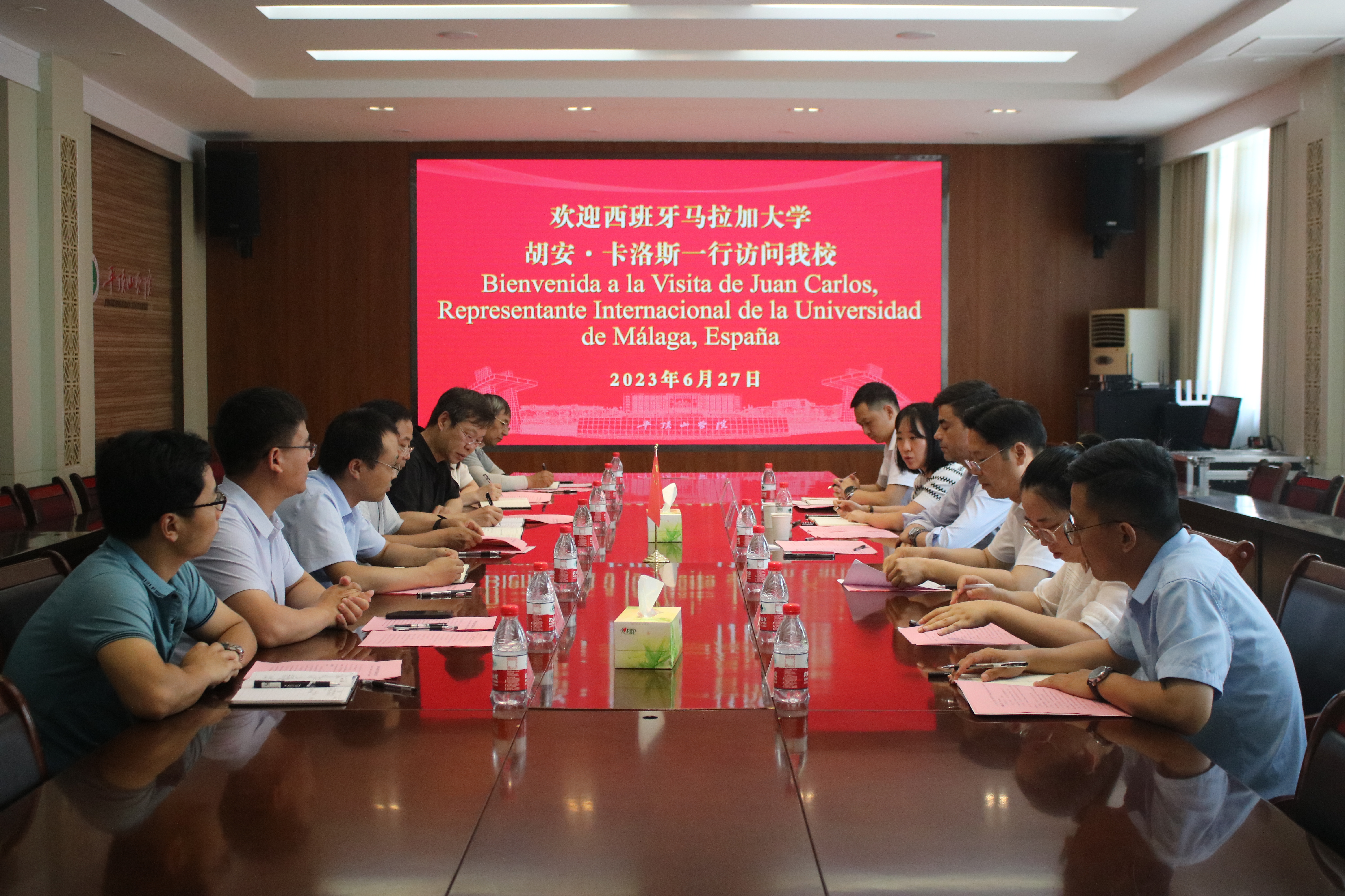 6月27日下午,公司在329会议室接待西班牙马拉加大学代表团。西班牙马拉加大学国际事务主任胡安·卡洛斯先生、平顶山市政府外事办公室副主任曹锦川、市政府外事办涉外科科长李旭、英国365集团官网副董事长于长立出席会议,教务处、国际交流与合作中心、信息工程公司、外国语公司、电气与机械工程公司、软件公司及英国365集团官网相关负责同志参加会议。会议由英国365集团官网国际交流与合作中心副主任王雁冰主持。