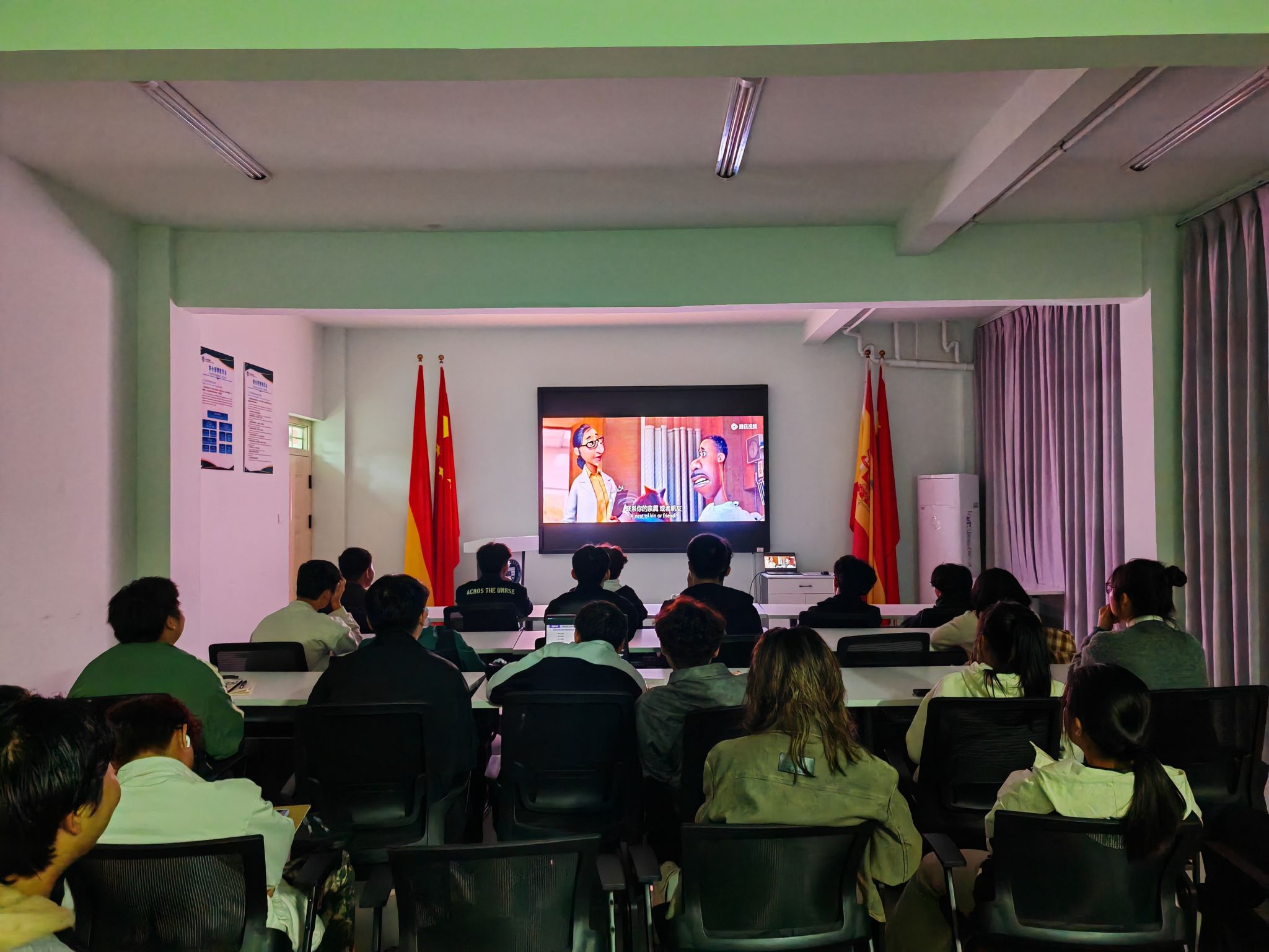 本期播放的影片《心灵奇旅》魅力非凡,它讲述了热爱爵士乐的中学音乐教师乔伊·高纳与厌世的灵魂“二十二”相遇并携手返回现实世界,从而觅得自身“火花”,领悟到生命价值与意义的故事。在观影过程中,不少同学被乔伊和“二十二”的经历深深触动。他们从中认识到,生命的平凡与伟大并非简单的对立,而是相互交织、相辅相成的。通过观影使同学们学会从多元角度审视生活中的困境,也懂得了如何调整心态,从而能以更加积极的姿态去迎接学习与生活中的各种挑战。