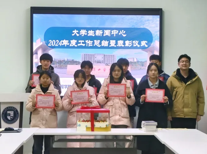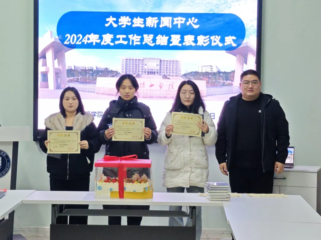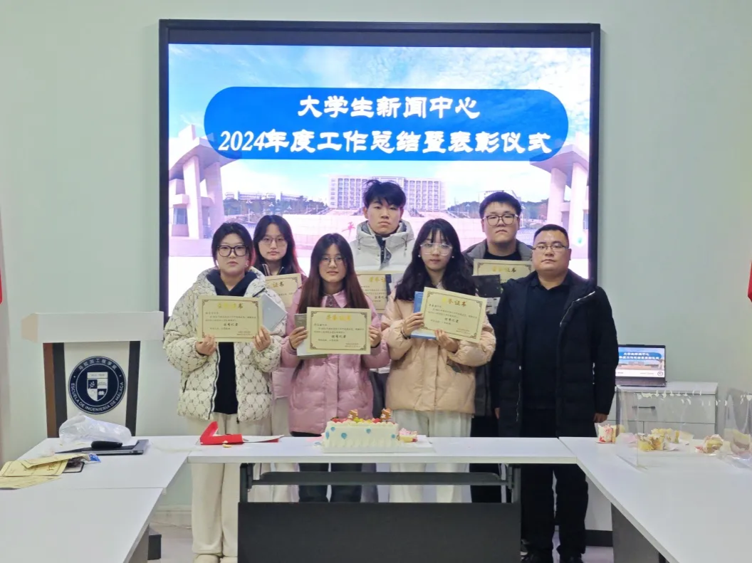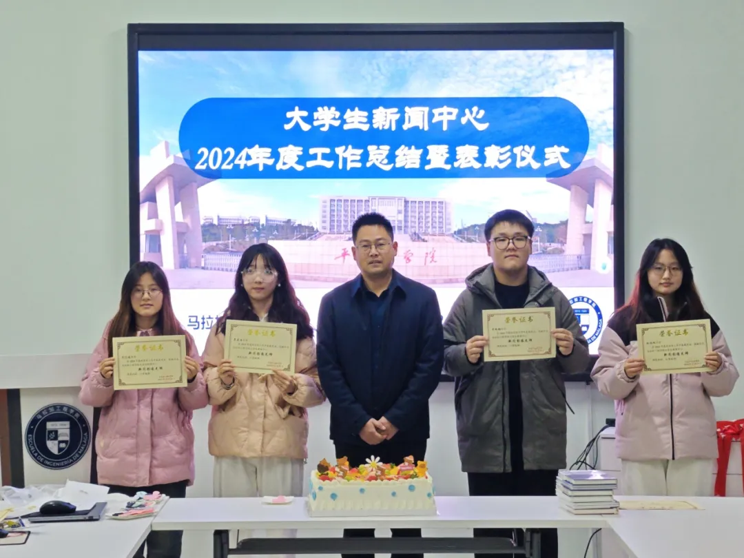 会上,新闻中心负责人黄鹤翔作部门年度工作总结。景东兴宣读英国365集团官网老员工新闻中心2024年度表彰文件。与会老师依次颁发了“新闻影像先锋”、“优秀记者”、“最佳投稿人”和“先进实习记者”等奖项。