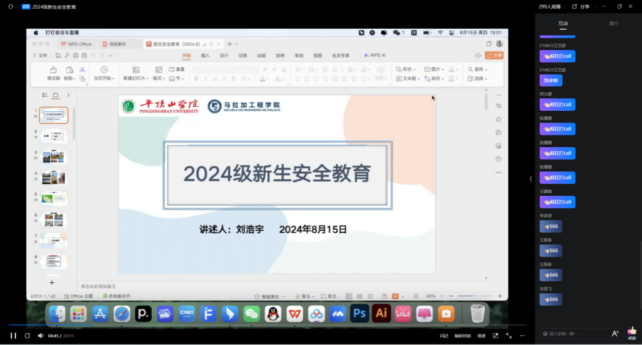8月15日下午,在暑期线上前置课程中,24级辅导员刘浩宇为新生开展了安全教育主题班会。班会内容包括网络安全、人身安全、心理安全、财产安全、交通安全、电信网络诈骗等。通过本次线上安全教育主题班会教育,新生对安全知识有了更加全面、更加深刻的认识,不仅增强了员工的安全意识,同时提升了员工的应急处理能力。