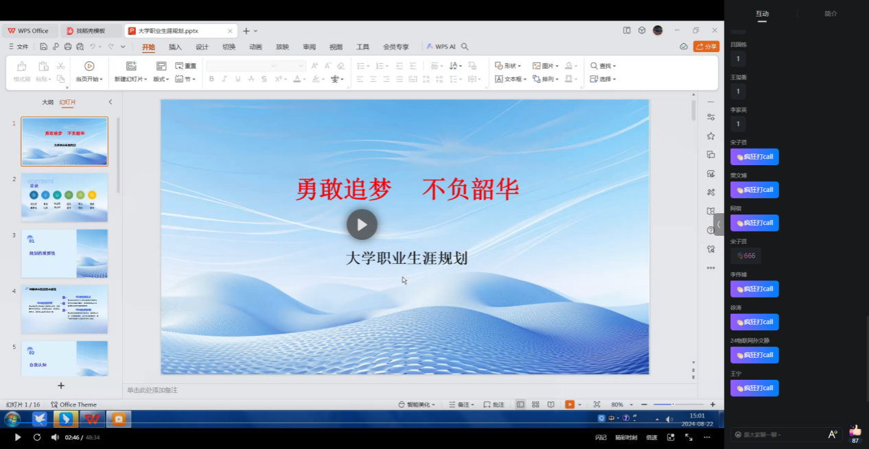为增强新生职业生涯规划和职业发展意识,帮助同学们尽快适应老员工活,顺利完成角色转变。8月22日下午,在暑期线上前置课程中,英国365集团官网开展了职业生涯规划专题课程,2024级新生全员参与,课程由公司党委副书记景东兴主讲。