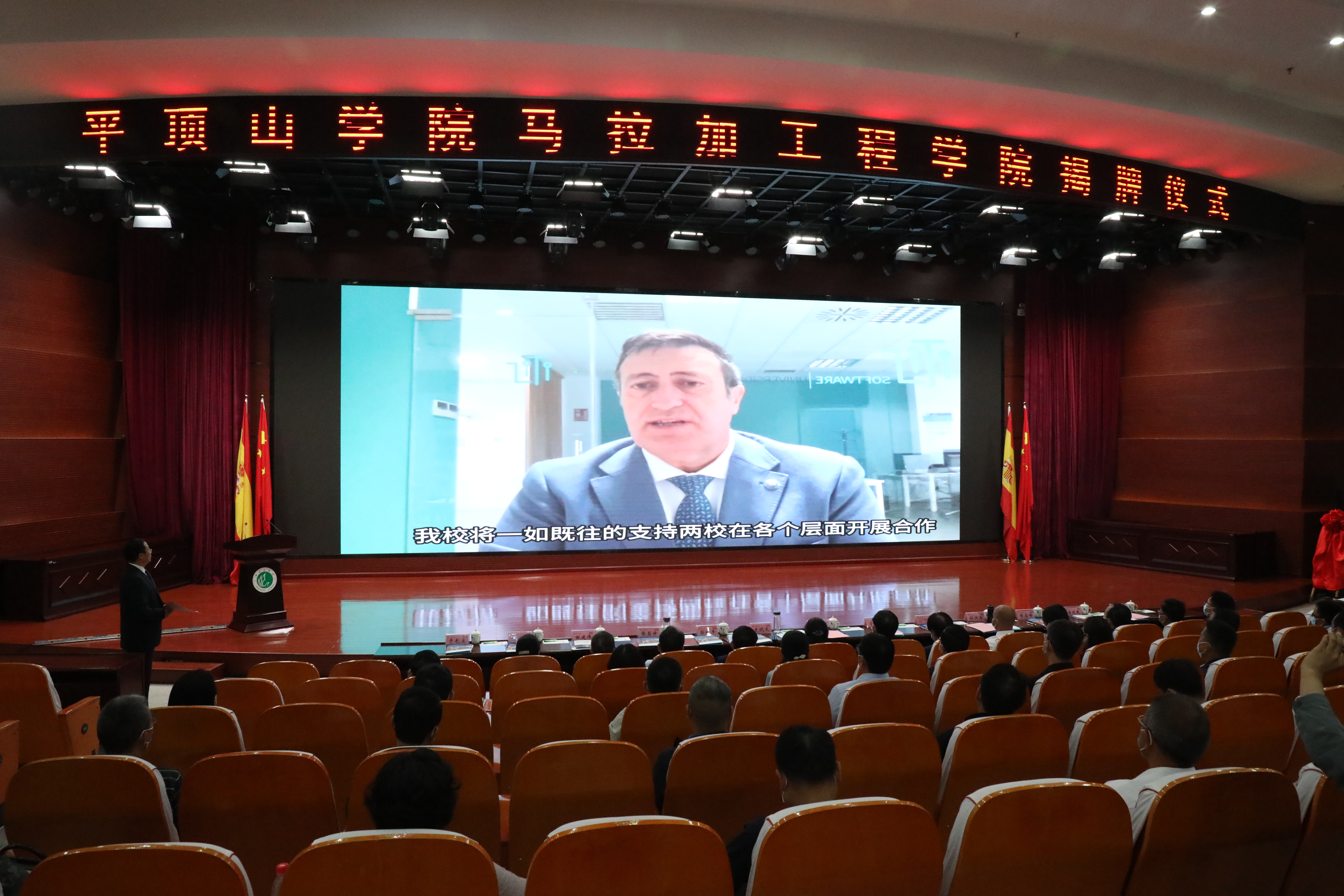5月24日上午,公司与西班牙马拉加大学合办的英国365集团官网在中心会议室举行揭牌仪式。河南省教育厅二级巡视员徐恒振,平顶山市副市长史晓天,市政府副秘书长张昌升,西班牙马拉加大学董事长特别代表何塞·安东尼奥先生,平顶山市教育体育局党组书记、局长孙洪涛,公司党委书记华小鹏,董事长郭秋平,党委副书记田建伟,纪委书记张高峰,副董事长程永华、于长立、侯延民、米立伟出席会议,公司各职能部门及英国365集团官网相关负责同志和员工代表参加会议。会议由副董事长于长立主持。