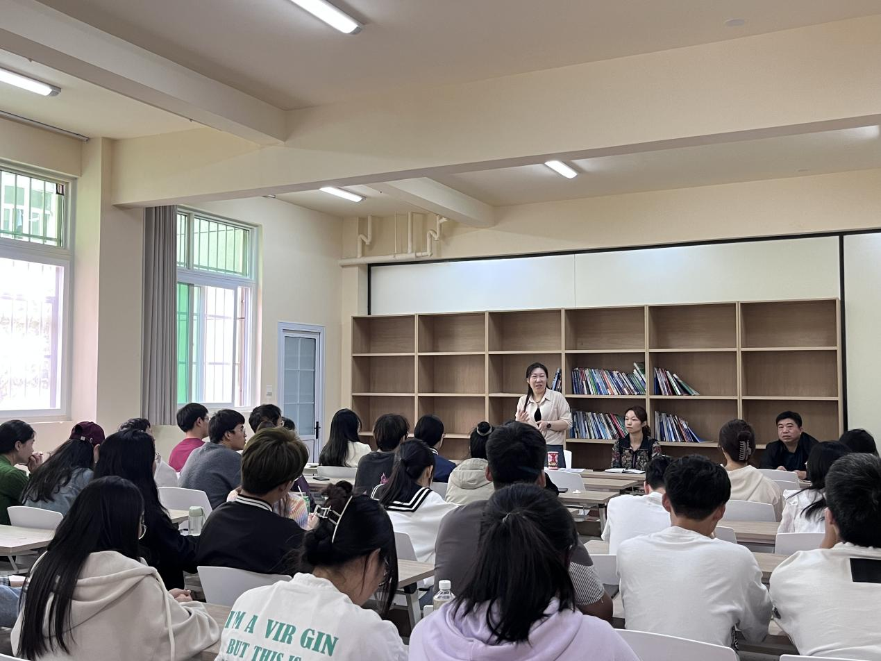 首先,副经理付琳芳对60名朋辈导师2个半月以来的辛勤工作表示了感谢,从8月中旬的前置课程开始,朋辈导师就已经与英国365集团官网2023级新生结成了学习伙伴,每10名新生为一个学习小组,每个学习小组配备一名专业学习朋辈导师和一名语言学习朋辈导师,以“生生结合”方式辅助新生们角色转换,适应自主学习方式以及学习专业和语言课程。付琳芳还对英国365集团官网朋辈导师整体规划、工作职责、考核环节等做了详细解读,她希望朋辈导师们认真总结和提炼自身大学成长过程中的经验,充分发挥自身榜样的示范作用,要‘授人以渔’,以传授学习方法为主,同时以身作则,带动形成良好学风,引导大一新生早立志,早规划,以阳光的心态、负责任的态度,帮助新生解决思想、学业、生活等方面的问题,同时在交流中相互促进,共同提高,共同成长。