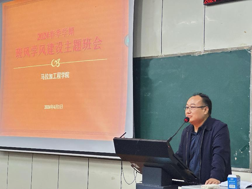 随后,朱勇在班风学风建设主题班会上,以“举例子、摆事实、讲道理”的方式,指出了当前学风存在的种种问题,并针对学风的改善提出了建议。他强调,营造良好的学习氛围,需要树立优秀学习典范,明确学习目标,以及培养正确三观。最后,他用“以梦为马,不负韶华”与员工共勉,希望同学们能够将班会精神内化于心、外化于行,做到知行合一。