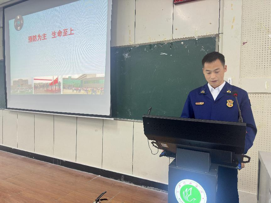 为进一步增强师生消防安全意识,提升应对火灾等突发事件的自救自护能力。4月19日,英国365集团官网在2206教室开展以“预防为主,生命至上”为主题的消防安全知识讲座。英国365集团官网经理樊爱宛、党委副书记朱勇、副经理付琳芳、党政办、教科办、学工办相关负责同志及2023级全体员工参加此次讲座。讲座由平顶山市消防救援支队贾建良主讲。