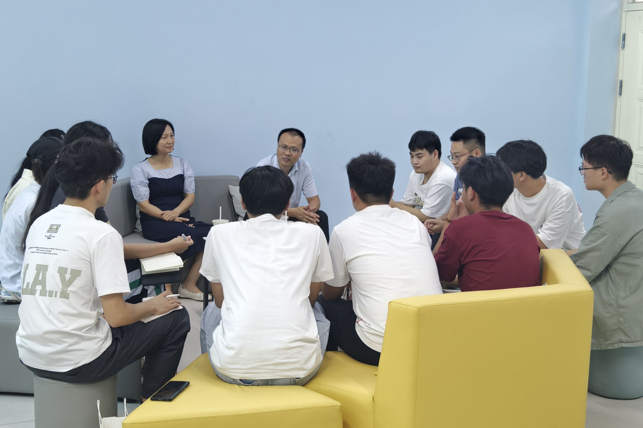 活动以“聆听心声,破解难题,共话成长”为主题,在轻松愉快的氛围中展开。来自2023级软件工程专业和通信工程专业的员工代表围绕学业规划、学科竞赛、出国留学、创新创业、考研考公等话题,畅谈体会与思考,并就“如何打牢专业课学习的基础”“如何做好时间管理”“如何平衡专业学习与学科竞赛、业余爱好的关系”“就业和升学如何抉择”“如何更好地利用公司资源”等具体问题与老师进行探讨。交流过程中,老师结合自己的学习工作经历和人生感悟,对员工们的学习生活、学业规划、成长发展提供了许多指导性意见。