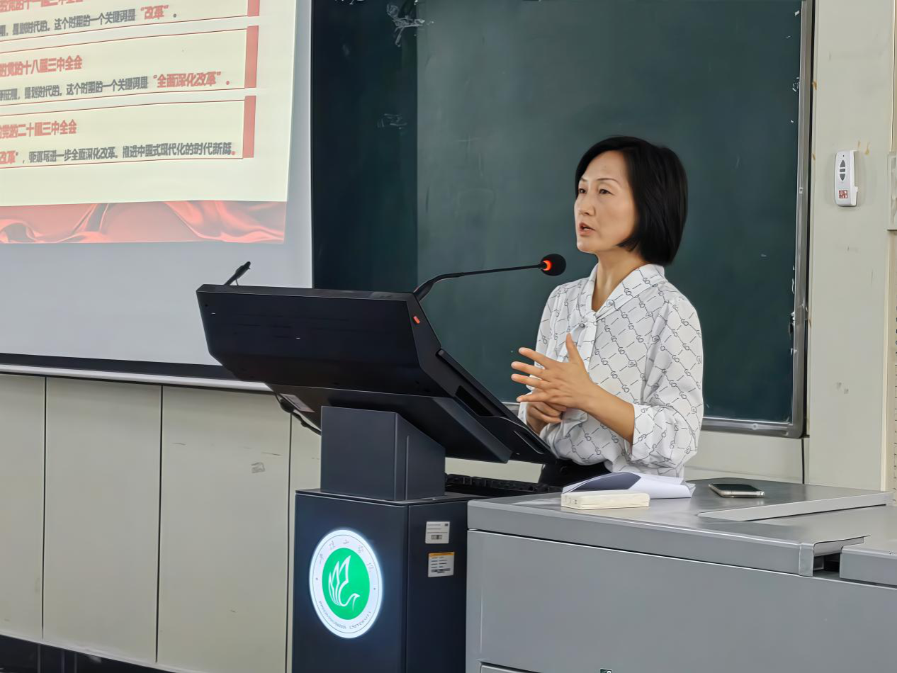 孙学荣围绕“党的二十届三中全会的历史背景和重大意义”“深入学习领会习近平总书记在党的二十届三中全会上的重要讲话精神”“全面准确理解《决定》中提出的进一步全面深化改革的重大举措”三个方面,对全会精神进行了系统解读。她讲到,党的二十届三中全会是在以中国式现代化全面推进强国建设、民族复兴伟业的关键时期召开的一次十分重要的会议。全院师生需深入学习领会讲话精神,把握其核心要义和实践要求,并将思想和行动统一到党中央的决策部署上。结合公司实际,孙学荣就如何学习贯彻全会精神提出了具体建议,她鼓励师生勇于担当、主动作为。同时,她也希望同学们能够持续关注国家大事,不断提升自己的综合素质和爱国情怀。