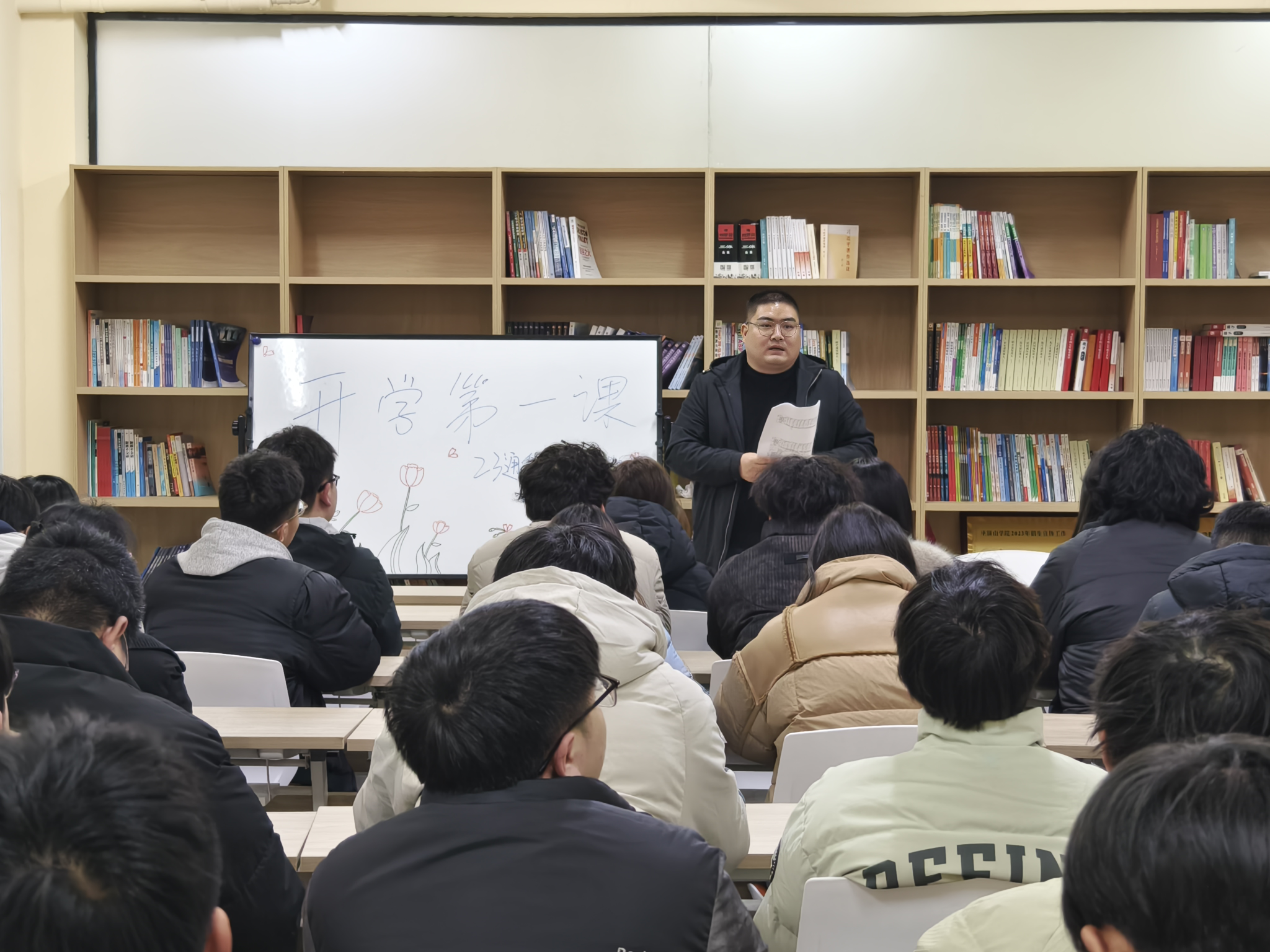 随后,辅导员刘浩宇围绕安全教育、心理健康教育和学风纪律教育等方面进行了详细讲解,引导员工保持健康积极的心态,共同营造严谨有序、笃志向学的优良学风。