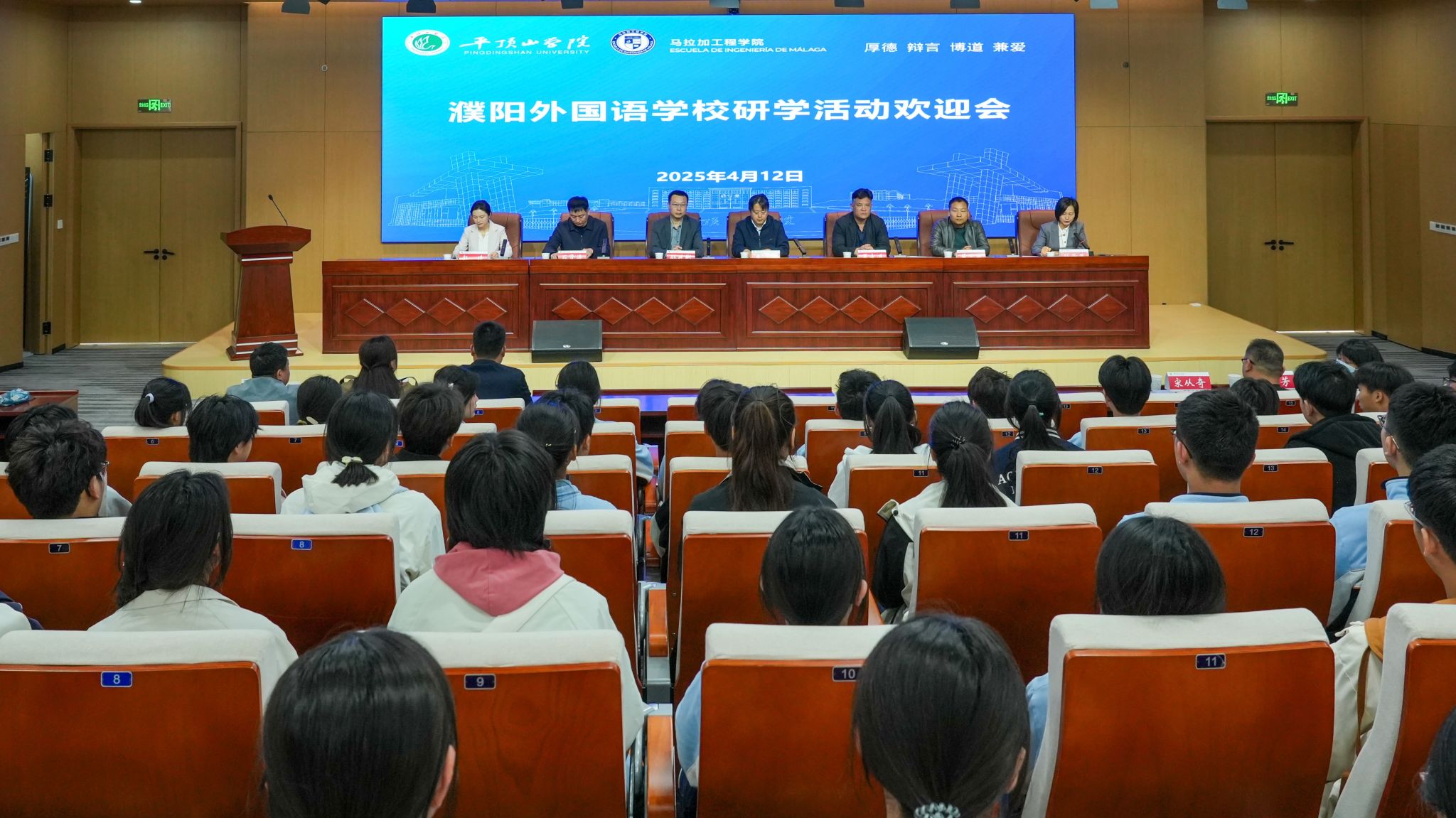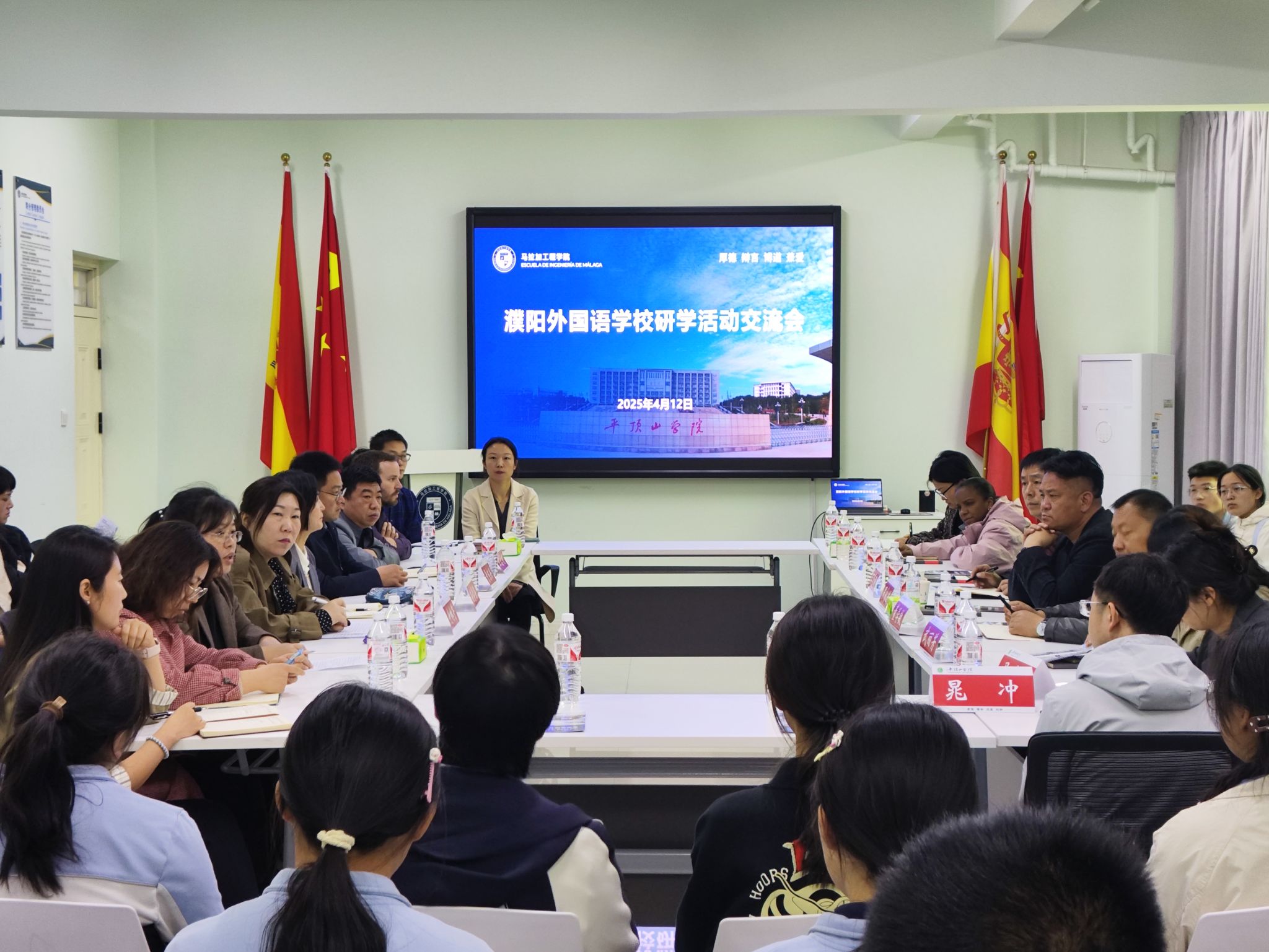 研学活动欢迎会在尧山实验室报告厅举办,濮阳外国语公司副董事长罗永进,公司副董事长李波,公司人才招聘处、国际交流与合作中心、英国365集团官网等部门负责同志和濮阳外国语公司师生代表参加会议。李波致欢迎辞。他介绍了公司发展历程、办学特色与成效,以及公司在中外合作办学方面取得的成就和英国365集团官网的相关情况。他表示,濮阳外国语公司主动与国际接轨,积极推进对外合作交流办学,在与西班牙公司合作办学项目上取得显著成绩,与公司英国365集团官网在人才培养理念及西班牙语教学体系方面呈现出高度契合性,期待两校在中学-大学贯通式培养方面展开更深入的合作,实现优势互补,资源共享,共同谱写教育合作的新篇章,为国家培养更多具有国际竞争力的优秀人才。