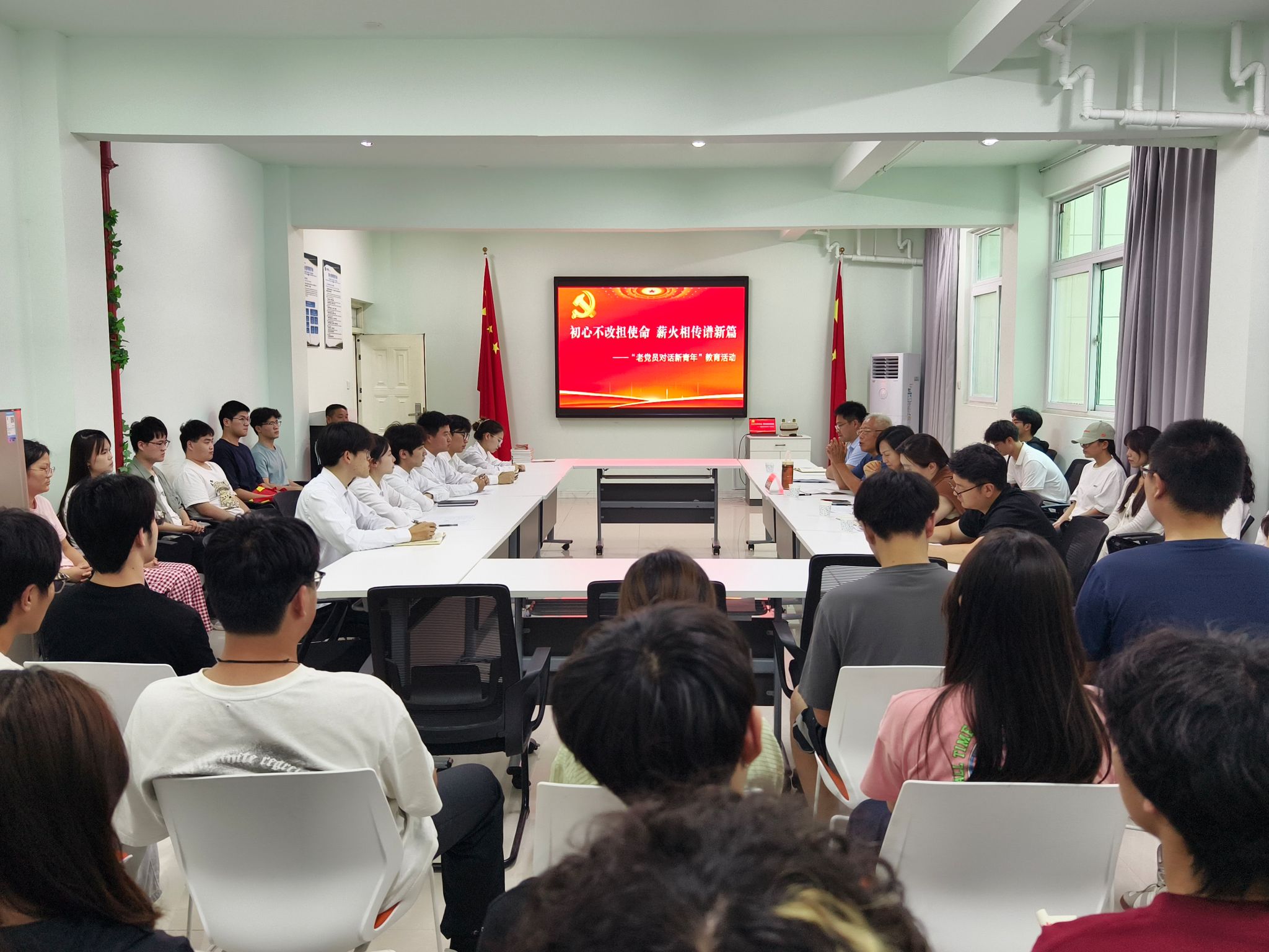 活动在一场跨越党龄与时代的对话中开启。53年党龄的老党员王长河同志围绕“牢记入党承诺、坚定信仰信念,做让党放心的党员、感党恩、听党话、跟党走,发奋学习、提升为人民服务的能力”三个方面,为与会人员生动诠释了党员的初心使命。他结合自身经历和人生感悟,勉励大家要把“全心全意为人民服务 ”的宗旨铭记在心,锐意进取、无私奉献,用实际行动践行入党誓言。他还引用三大战役的壮烈历史、张思德“为人民服务”的崇高精神、焦裕禄“亲民爱民”的公仆情怀等经典事例,激励青年一代赓续红色血脉,坚定理想信念。分享结束后,新老党员面对面就如何践行党员初心使命、锤炼党性进行了进一步的交流。