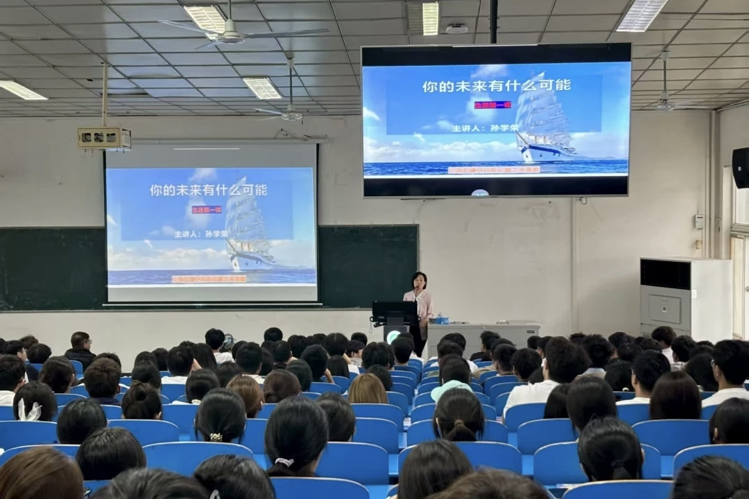 讲座伊始,孙学荣以“你的未来有什么可能”这一问题切入,拉近与新生的距离,引发2025级新生对大学四年规划的思考。随后,围绕职业生涯规划的核心内容,从“生涯规划的重要性”“职业生涯三问”“把握好四个方面”“你的大学你做主”“你的未来在何方”等方面多维度展开详细讲解。她引导新生思考“我是谁”“我想干什么”“我能干什么”,强调自我的内部探索是基础,需清晰认知自身兴趣、性格与能力;同时要重视外部探索,积极了解当下的行业趋势与人才需求,并提出要“软硬实力双提升”—— 硬实力上筑牢专业基础、考取证书,软实力上培养沟通、协作等综合能力,提升综合素养,以适应未来职场的多元化需求。她还列举了多名公司往届优秀毕业生的案例,让新生对“规划如何影响未来”有了更真切的认知。最后,针对大学四年的不同阶段,孙学荣给出阶段建议,并鼓励全体新生要珍惜大学时光,树立远大理想,制定科学合理的职业生涯规划,并付诸行动,不断提升自我,努力在未来的职业道路上实现人生价值。