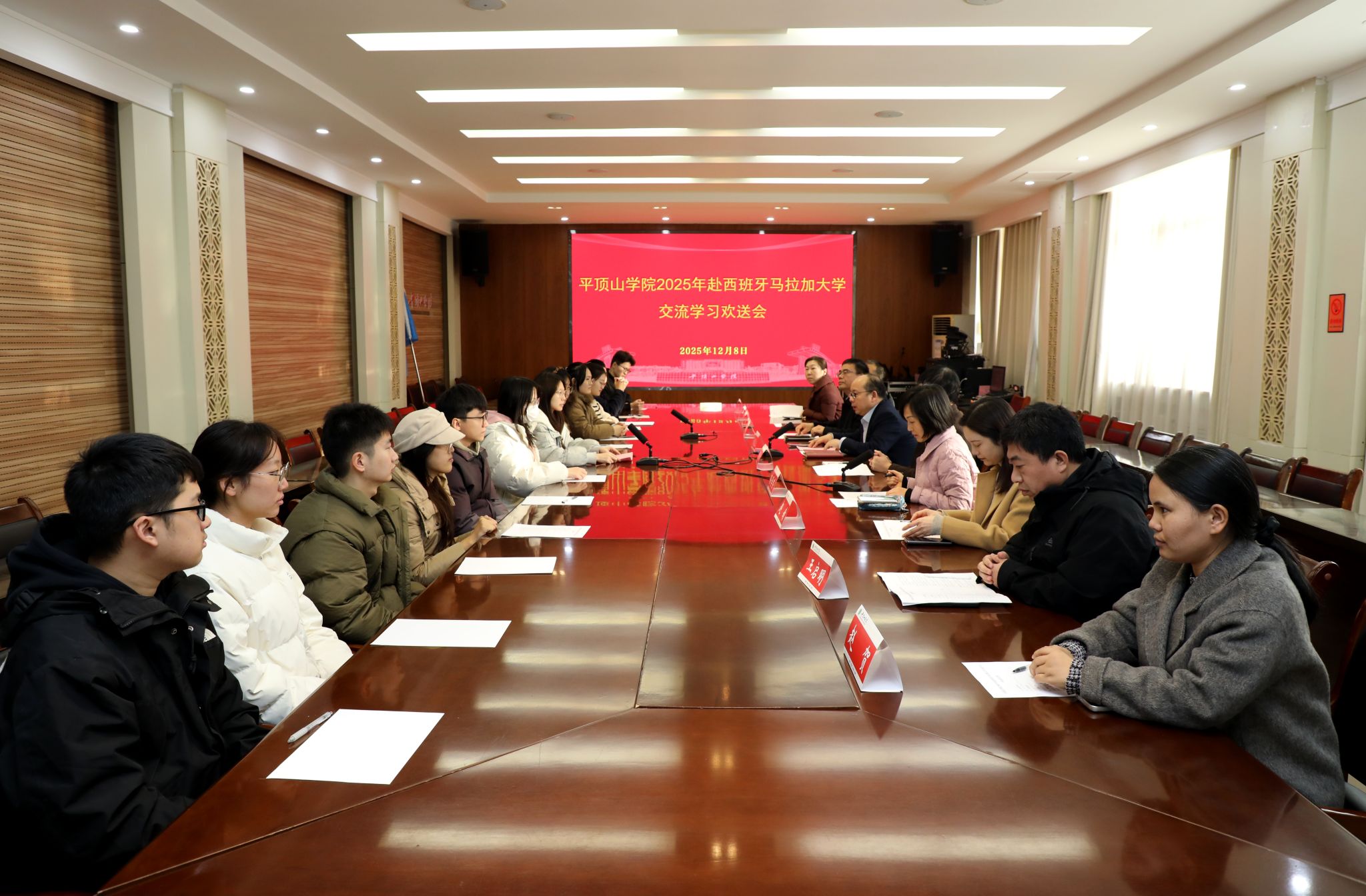 12月8日下午,公司在行政楼329会议室举行了2025年赴西班牙马拉加大学研学团行前教育暨欢送会。副董事长代克杰出席会议,教务处、国际交流与合作中心、英国365集团官网等单位负责人、中外合作办学项目专员及全体研学团成员参加会议。会议由公司党委书记孙学荣主持。